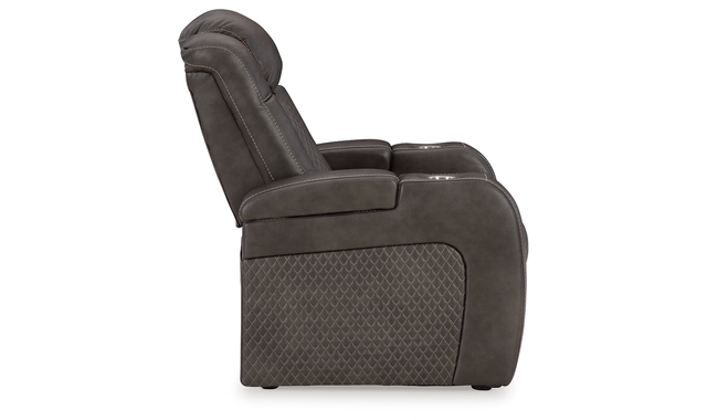 This power recliner goes beyond basic comfort. It upgrades the everyday, turning your living room into an entertainment hub. Don’t want to leave your seat? Keep essentials in reach with storage arms and cup holders. You can create an even cooler vibe for family movie nights and friendly gaming matches with LED lights. And your sleek style isn’t compromised—its diamond stitching and streamlined arms recall the aesthetics of luxury automobiles.