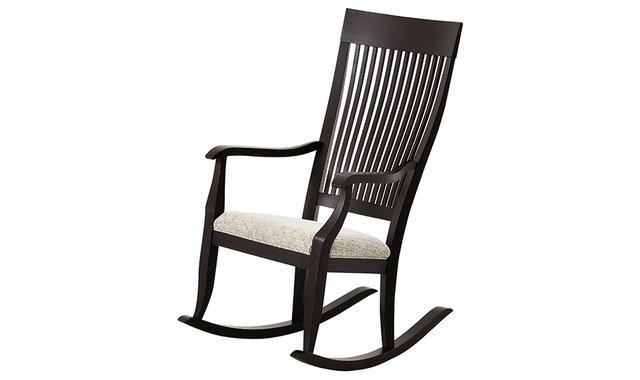 Atelier St-Jean – 570 Chair. Rocking chair with upholstered seat. Entirely made in Quebec with a choice of wood colors and fabric options.