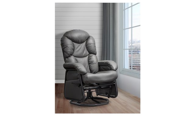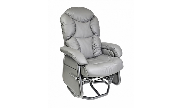 This comfortable leather combo armchair on a metal base is - reclining - rocking - and swiveling. You'll love its practicality, which fits into more than one room in the house. • For even more comfort • ottoman also available.