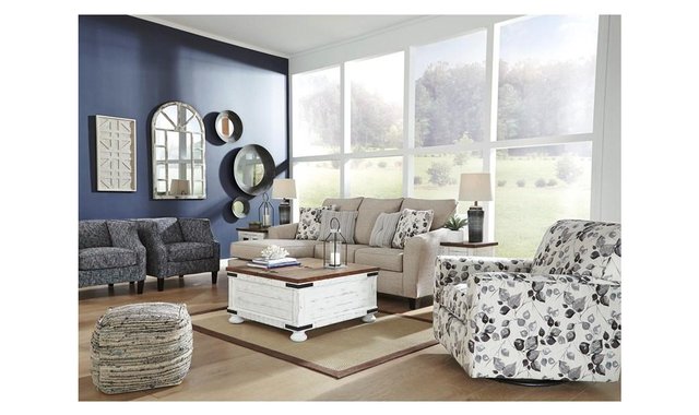 | Additional Information | • Corner-blocked frame • Attached back and loose seat cushions • High-quality foam cushion wrapped in poly fiber • Polyester/rayon upholstery • Smooth 360-degree swivel • Arm height: 25" • Top of cushion to top of back: 18" |