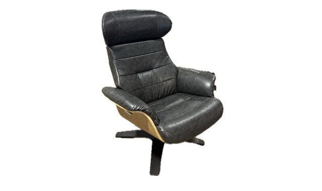 FINLANDE reclining and swivel armchair by BO MEUBLE - Charcoal vegan leather - Manually reclining - Black base- ottoman included