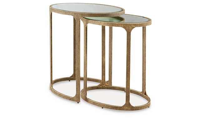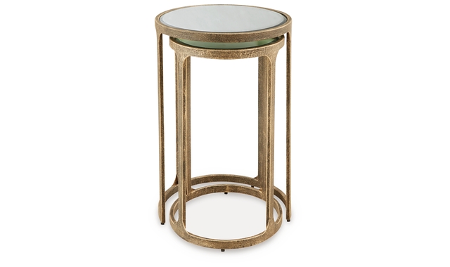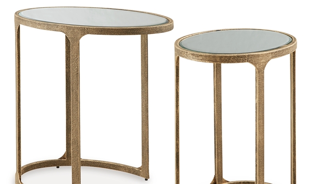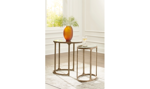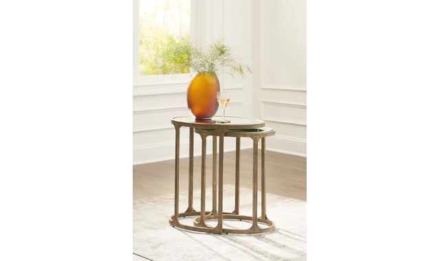 Looking to add a touch of traditional style to your space? You’ll delight in the classic appeal of this accent table set. Mirrored tabletops, supported by antiqued goldtone bases, bring light, dimension and glam character. A nesting design allows you to stage the tables solo or tuck them neatly together.