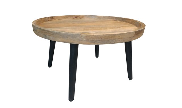 Coffee table made of solid mango wood in natural color with black painted wood legs, which you can match with the end table (corner) of the same model.