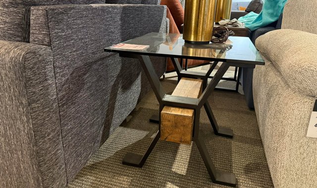 Bold, modern, and full of character — this end table by Magnussen Home is a true statement piece for contemporary and industrial spaces. Description: This striking end table combines the strength of black metal, the authenticity of natural wood, and the elegance of clear glass. Its geometric frame and raw materials bring a sculptural quality to any living room setup. • Tempered glass top: Clear and durable surface that showcases the base while adding a touch of sophistication • Black metal base: Industrial X-shaped frame offering both support and style • Solid wood accent: Central wood block with a natural finish adds warmth and contrast • Urban industrial design: Perfect for lofts, modern living rooms, or rustic-inspired interiors