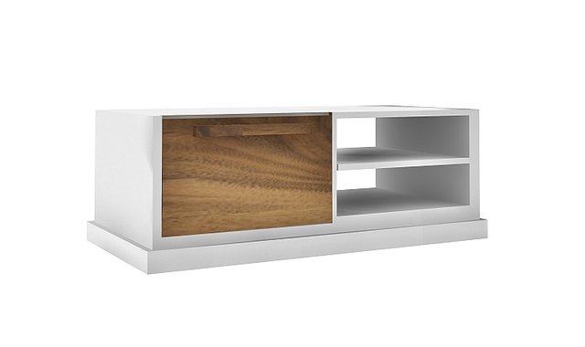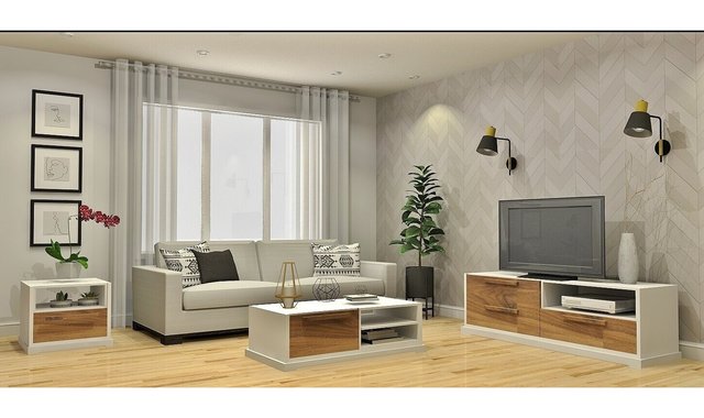 Coffee table made of premium quality thermodiffused melamine with a white and walnut finish. You can complete your decor with the end table and the TV base.