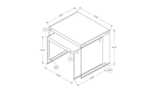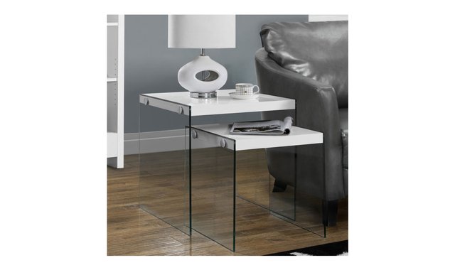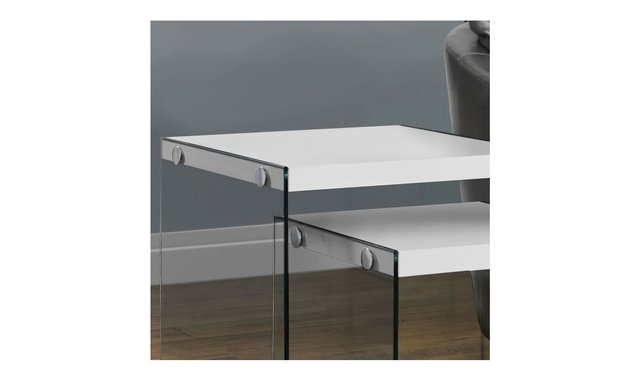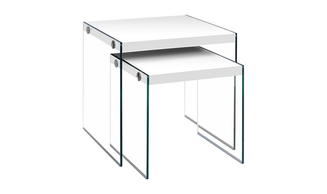 With its chic glossy white surface, these 2 nesting tables give any room an exceptional look. The tempered glass base offers solid support as well as a contemporary look. Use this multi-functional set to complete your living space. Dimensions: Large: 20 x 20 x 20 inches Small: 16 x 16 x 16 inches Browse the section below for other products that may interest you for more ideas. No assembled.