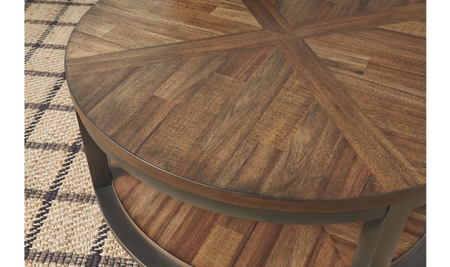 Similar to mixed media art, this accent table set combines the modern appeal of metal with the rustic qualities of wood for a striking meld of earthy elements. Beautiful butterfly-patterned veneer transforms the everyday in an extraordinary way. No assembled.