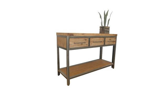 | Additional Information | • Solid acacia, veneer & metal • Wire brush finish • Portobello color • 3 Drawers • 1 Low open shelf • Full extension metal slides • Screwed back panel • Assembled |