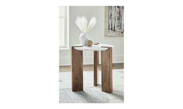 With its back-to-nature sensibility, this end table is a natural fit for outfitting your modern living area. Its clean-lined design lets the beautifully organic quality of the mango wood shine through, complemented by the sleek refinement of a marble top. This table is the ideal spot for decor, snacks and beverages.