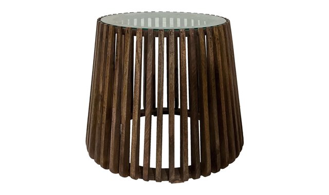 Collection Tonic Made in India End table Tempered glass top 5mm Natural color Solid acacia