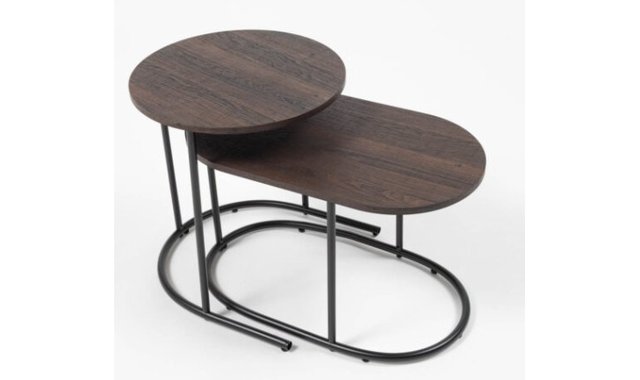 Elegant and versatile, this set of nesting tables features soft, rounded shapes and a clean, modern design. The metal base adds a graphic lightness, while the wood tops are available in two warm finishes to suit any interior.Leur base en métal apporte une touche de légèreté graphique, tandis que les dessus en bois sont offerts en deux teintes chaleureuses pour s’adapter à votre intérieur. Whether styled together or used separately, they bring flexibility and style to everyday living.Utilisées ensemble ou séparément, elles offrent flexibilité et style au quotidien.