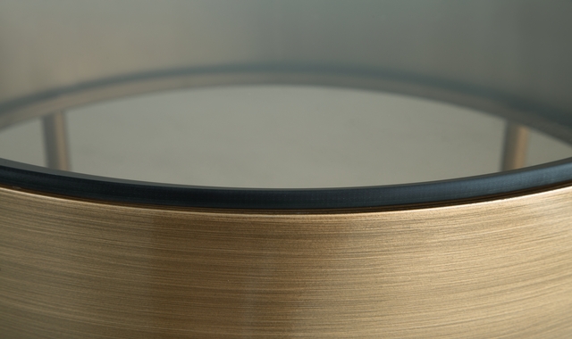This table set combines metal and glass materials for a stylish and functional home accent. Tubular legs provide a sturdy base, while the aged brass-tone metal apron adds an elegant touch. A black tempered glass tabletop offers both sleek aesthetics and durability. With a modern design and high-quality craftsmanship, the set is a wonderful display of great taste.
