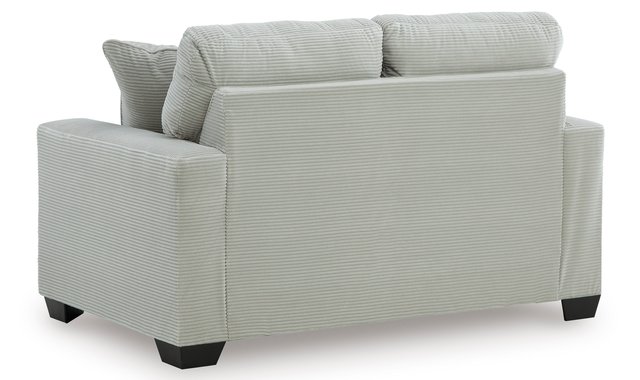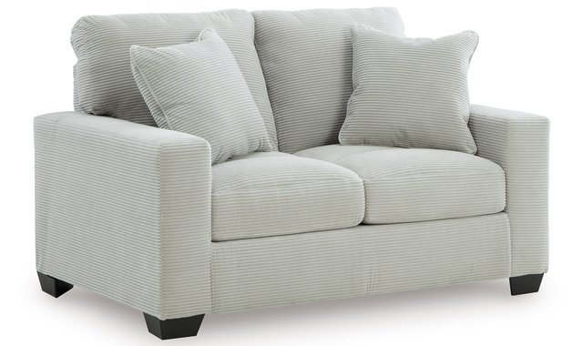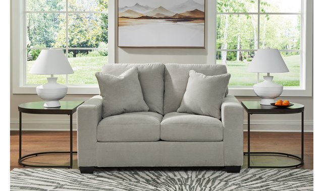 The crisp neutral hue and striking design details of this loveseat create a living room that expertly reflects your contemporary taste. For irresistibly cool textural appeal, the ultra-soft fabric is enhanced by a small-scale corded look. With a clean-lined silhouette complete with track arms, this sofa allows you to take a trend-right approach to everyday living.