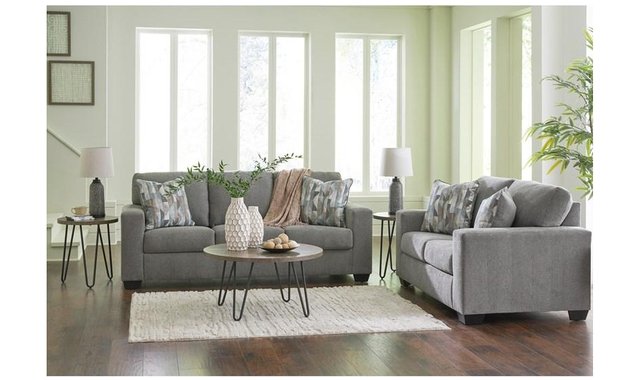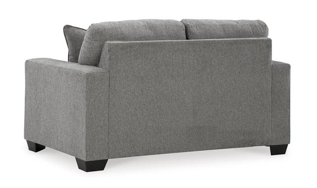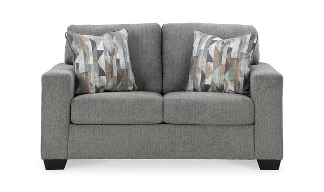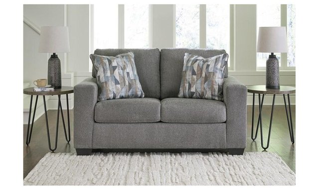 You’re in for a neat treat with this loveseat. Its comfy seats are covered in soft, textural upholstery, and the wide track arms are eager to support your quest for total relaxation. Distressed abstract toss pillows bring a fresh breath of contemporary style while accentuating the loveseat's color.