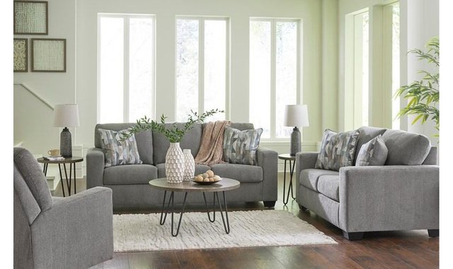 | Additional Information | • Corner-blocked frame • Attached backs and loose seat cushions • High-quality foam cushions wrapped in poly fiber • Accent pillows included • Pillows with soft polyfill • Polyester upholstery • Exposed feet with faux wood finish • Platform foundation system resists sagging 3x better than spring system after 20,000 testing cycles by providing more even support • Smooth platform foundation maintains tight, wrinkle-free look without dips or sags that can occur over time with sinuous spring foundations • Arm height: 25" • Top of cushion to top of back: 18" • Leg height: 3" • 22" Toss Pillow |