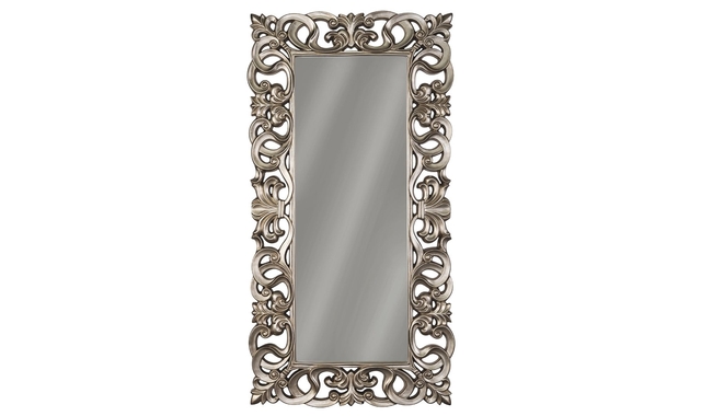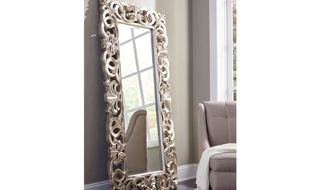 Exquisitely crafted for any glamour queen, this floor mirror is a splendid accent. Antique silver finish brings life to the ornate scroll design.