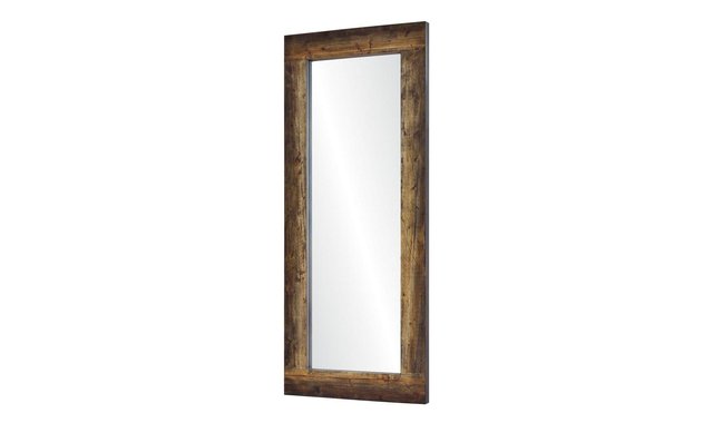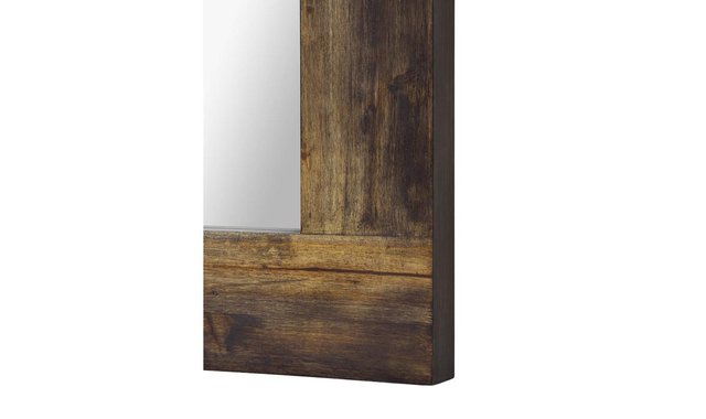 Large rectangular mirror with dark brown wooden frame.