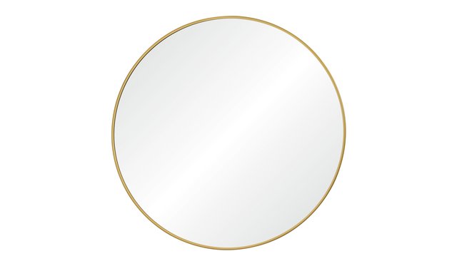 Round mirror with gold outline.