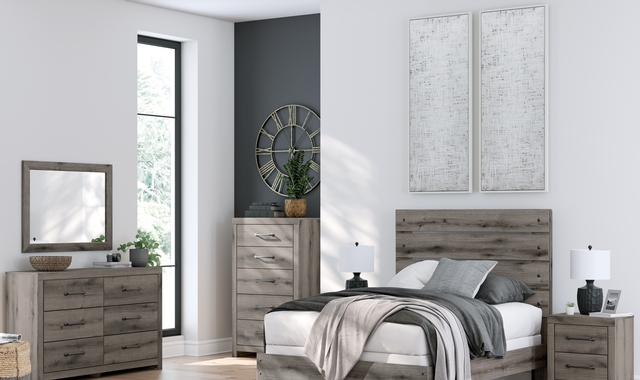 Combining a casual aesthetic with functional flair, this bedroom mirror suits styles from rustic to industrial. In a chic weathered gray hue, it brings a charmingly curated vibe to your morning and nighttime routines. Stage it as you please—this mirror has the versatility to hang solo on a wall or attach to the matching dresser (sold separately).