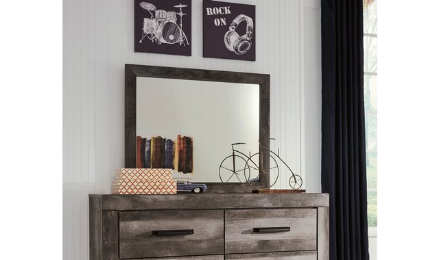 Mirror for 6-drawer double dresser • Modern rustic style • Gray finish over replicated oak grain • Also available
