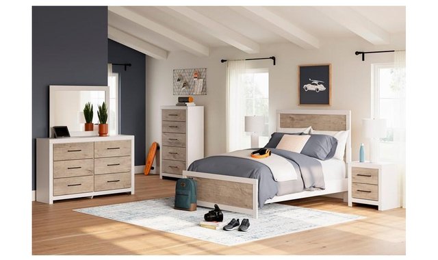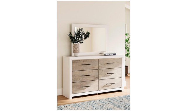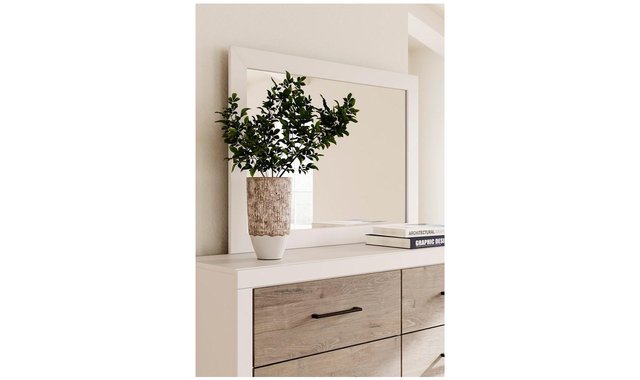 This bedroom mirror is made with engineered wood (MDF/particleboard/plywood). Pairs with other items in the series to make a dresser and mirror kit.