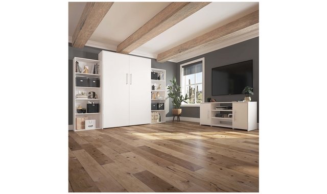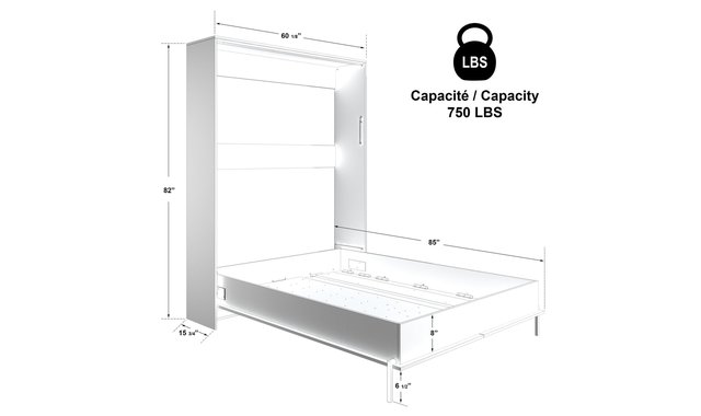 James THE COMPACT – The Wall bed that frees up space… without compromise! With its compact and elegant design, the JAMES Murphy bed is the perfect solution to maximize your space usage. Whether transforming an office into a guest room or saving space in a playroom, the James THE COMPACT adapts to all your needs. Slimmer than our other Murphy beds, this model combines discretion and durability with its Italian spring mechanism, tested to withstand over 20,000 opening cycles.. Available in twin, double, and queen sizes, this Murphy bed is crafted from thermofused melamine for unbeatable durability. In the "Natural Beauty" version, the Karisma finish offers a realistic embossed texture and a pleasant feel, while the other color options come in the Prelude finish, known for its ultra-realistic textures and ease of maintenance. This bed can be modular and combined with other products from the JAMES Collection to suit your tastes and needs. Whether you're creating a workspace, a relaxation area, or a dedicated sleeping space, the collection offers flexible options tailored to any room. You can also pair it with other furniture to design a multifunctional space perfect for your moments of productivity, rest, or daydreaming. Features : Compact design: The slimmest in our range, the JAMES bed fits seamlessly into any space. Italian spring mechanism: Tested for over 20,000 opening cycles, with adjustable tension settings to accommodate the weight of the mattress. Maximum mattress thickness: The maximum allowed thickness, including sheets, is 13.5''. Simplicity and safety: Before opening the faux doors, a safety chain located 5 feet off the ground must be unlatched. A retention strap ensures that the mattress stays securely in place with each opening. Invisible retractable legs: When open, the retractable legs provide solid support, and once the bed is closed, they disappear for a sleek, clean look. High weight capacity: This Murphy bed can support up to 350 lbs in the twin size and 750 lbs in the double or queen sizes, ensuring both comfort and safety. Elegant tubular handles: The false doors are adorned with long tubular handles, creating the illusion of a modern wardrobe. Easy assembly: With detailed instructions, this bed can be assembled in 3 to 5 hours, depending on experience level. It is recommended to have at least two people for assembly. Wall anchoring required: For optimal stability, the bed must be securely fastened to the wall according to the provided instructions. The necessary installation screws are included Recommended daily use: After each use or night of sleep, it is essential to ALWAYS close the bed. When closed, the springs remain in a resting position, avoiding unnecessary tension. Therefore, it is recommended not to leave the bed open for more than 18 consecutive hours. Secure delivery: ISTA-certified packaging ensures damage-free delivery. James THE COMPACT is the ultimate space-saving and comfort solution, optimizing your space without compromising on style!