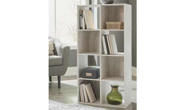 If it’s coastal chic or cottage quaint style you long for, the Paxberry whitewashed eight-cube organizer invites you to go to town. Its distinctive weatherworn finish conveys an easy-breezy sensibility, perfect for a restful bedroom retreat. Open and closed backs make it abundantly practical.