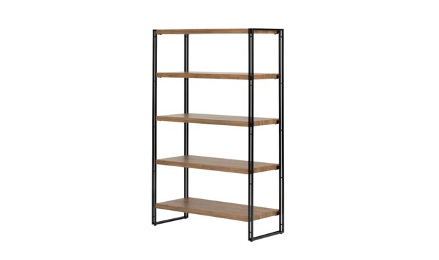 Wood effect shelf bookcase with black metal frame. Assembly included.