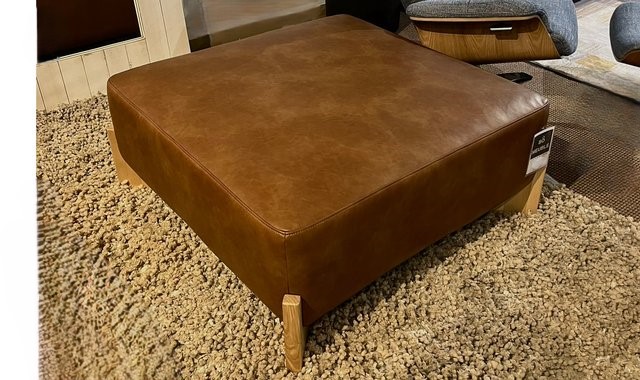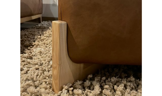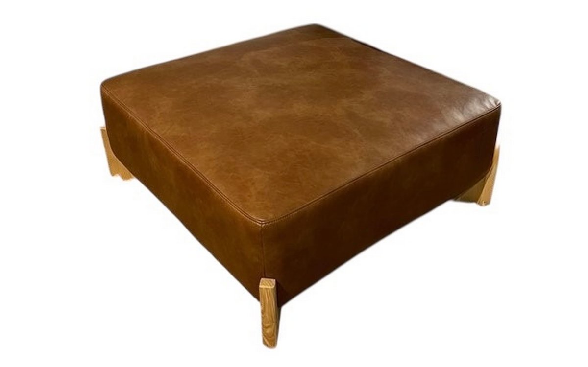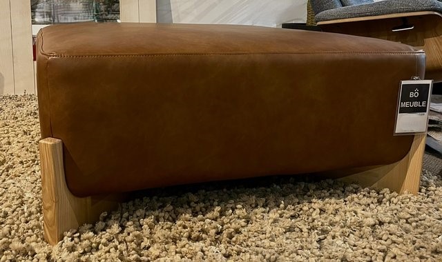 LOFT ottoman model by BO MEUBLE - Upholstery in bison brown vegan leather, vegetable leather made from plants - Light wood legs and base - Complement to the LOFT sofa, sold separately