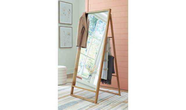 Add contemporary appeal to your home with this freestanding floor mirror. Its clean design and reflective surface create a sleek, spacious look. Admire your reflection while keeping your wardrobe essentials close by on the ladder-back easel stand. Who doesn't love multitasking furniture that helps you look good and stay organized?