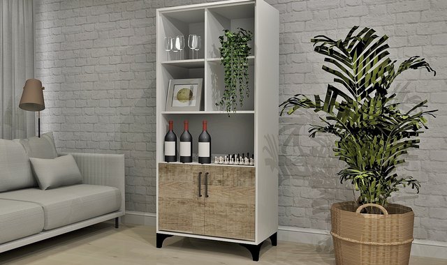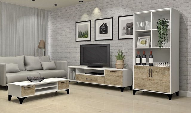 The MEQ model 6536-ET shelf in melamine and vintage oak veneer with a white finish and metal furniture legs adds enhanced style to your living room. This shelf is more than just storage; it's a decorative element in its own right that adds a touch of elegance and functionality to your living space. Designed with the same high-quality materials as the other pieces in the MEQ collection, it complements your layout perfectly while offering additional storage space. The blend of durable melamine and vintage oak veneer creates a contemporary aesthetic with a touch of rustic charm. The bright white finish brings a sense of openness and freshness to your room, while the metal furniture legs add a touch of modernity and stability. The shelves provide generous space to display your favorite books, decorative items, or precious memories, allowing you to personalize your living room according to your tastes and style. Whether used to organize your collections or to showcase decorative pieces, the MEQ model 6536-ET shelf is a stylish and practical choice to enhance your living room with sophisticated storage.