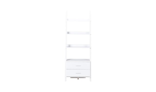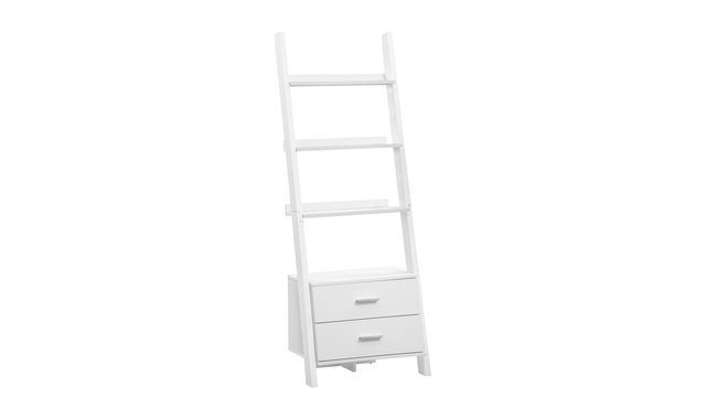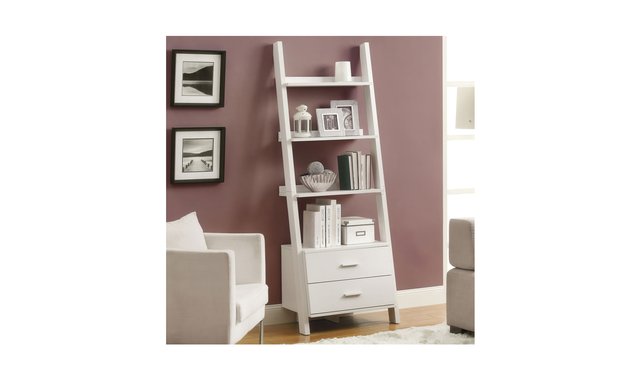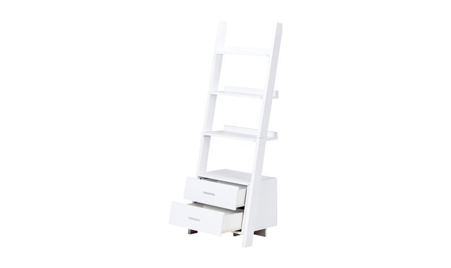 Who can resist this ladder bookcase that stands 69 inches tall? Two storage drawers help to make this piece both unique and practical. It also has plenty of room for your frames, decorative pieces, and books. Showcase this ladder bookcase now in your home. Browse the section below for other products that may interest you. No assembled.