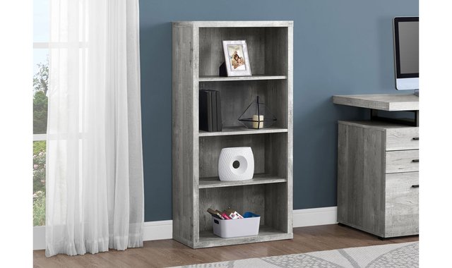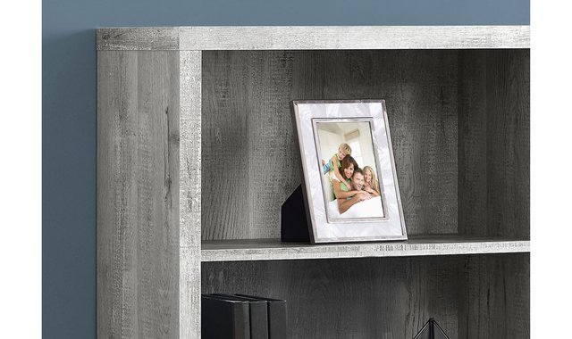 Here is an elegant bookcase with an industrial style grey imitation wood finish that is the perfect combination of trend and functionality. With its clean lines and large panels, this bookcase will allow you to organize your items with style. It offers three adjustable shelves to store your books or decorative objects. This bookcase can be used alone or in combination with a matching desk and or file cabinet in your home office, bedroom, family room or living room. Browse the section below for other products that may interest you for more ideas.