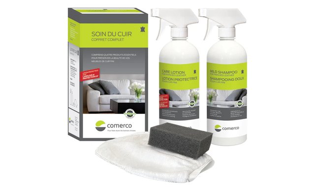 Maintain the beauty of your leather furniture with our Leather care – Complete Kit. It contains a Protective Lotion with lanolin and UV protection, a Mild Shampoo, an extra soft fiber applicator glove, and a sponge. This set is ideal for maintaining and protecting finished leather.