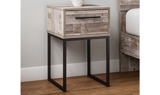 Part beach chic, part urban hip, this nightstand is everything you dreamed of, at a comfortably cool price. The butcher block whitewash finish over replicated pine grain lends a richly relaxed aesthetic that suits your sensibility. Dark pewter-tone drawer pull and sled legs add a high design element. What an easy-breezy choice for a naturally beautiful bedroom retreat.