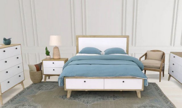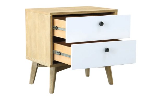 Personnalize your bedroom with this night stand of acacia wood. Complete bedroom set available.