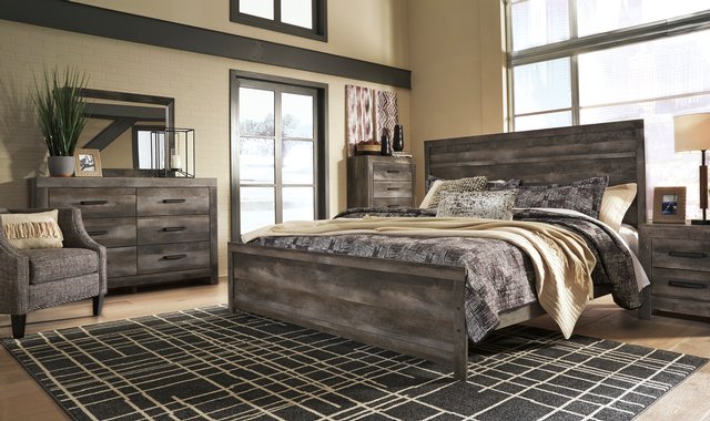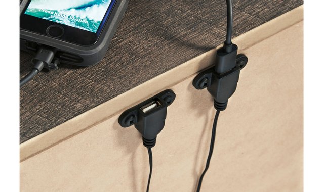 2-drawer night table minimalist-chic • Modern rustic style • Gray finish over replicated oak grain • Hooded pull hardware in dark finish • 2 smooth-gliding drawers • 2 slim-profile USB charging stations • Power cord included • Also available • 6-drawer double dresser • mirror • headboard •footboard • bed rails