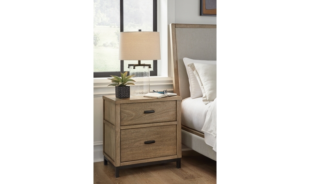 Sleek in its simplicity, this nightstand takes a relaxed approach to refinement. Its mixed-material design brings a trendy urban-chic feel to your bedtime routines, while functional features keep your bedroom clutter-free. Clothes and linens are easily tucked away in the smooth-gliding drawers.