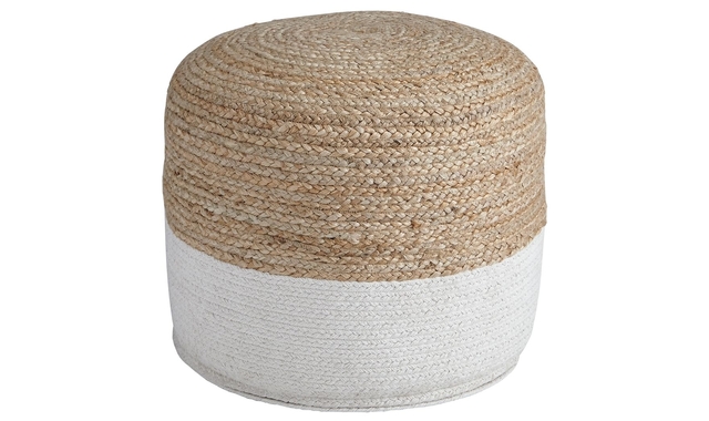 Natural beauty is always in vogue, and this pouf proves it. Braided design in natural jute hue and white is simple yet fresh. Stylish stitching and dense filling hold the look together.