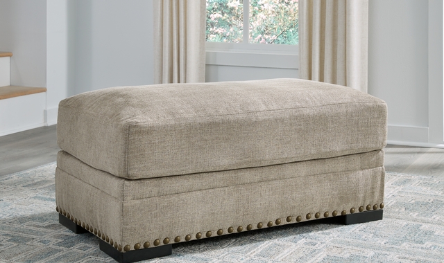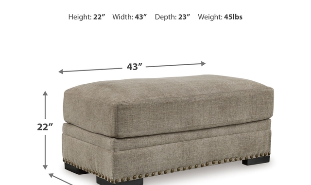 Looking to enhance your home's visual appeal? This ottoman offers sophisticated design, comfort and elegance with tonal colors and nailhead accents. Enjoy optimal coziness with luxurious soft upholstery and a feather-blend cushion. Perfect for modern spaces, it's just the spot to sit back and relax in style.