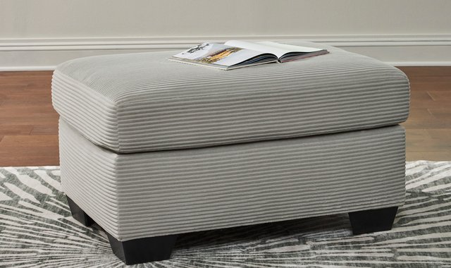 The crisp neutral hue and striking design details of this ottoman create a living room that expertly reflects your modern taste. For irresistibly cool textural appeal, the ultra-soft fabric is enhanced by a small-scale corded look. With a clean-lined silhouette, this ottoman allows you to take a trend-right approach to everyday living.