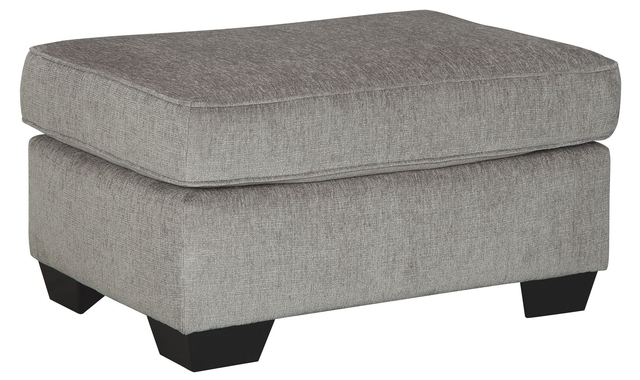 If style is the question, then this striking ottoman is the answer. Its decidedly contemporary profile is enhanced with plump cushioning and a chenille-feel upholstery that's so pleasing to the touch. Rest assured, this ottoman in richly neutral alloy is sure to play well with so many color schemes.