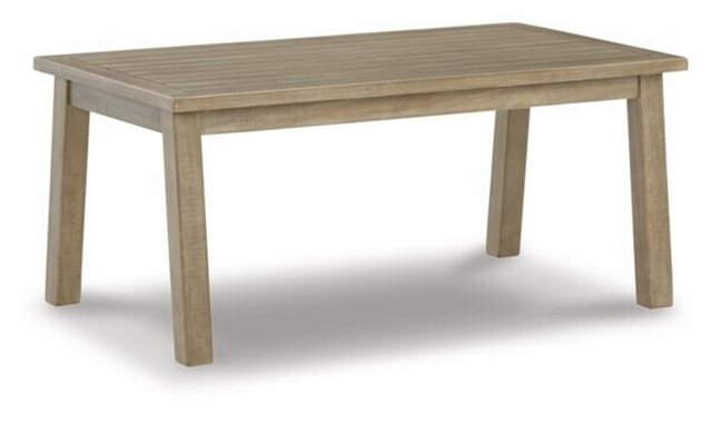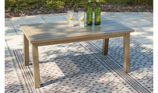Outdoor furniture - Center table - P342-701 You've got it made in the shade with this outdoor coffee table. Made of eucalyptus wood with a slatted design to prevent rainwater buildup, this piece has a rustic charm and is built to last. Made of eucalyptus wood Natural brown wood color Slatted design Stainless steel hardware Assembly required
