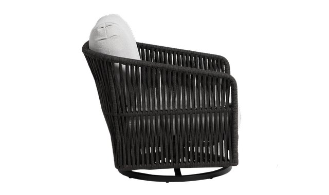Swivel and rocker chair with an aluminium frame. Cobblestone Durastrap with the Diva Night Aluminium Frame, it emphasizes both functionality and style. Choice of fabrics available. *Fabric Canvas Granite