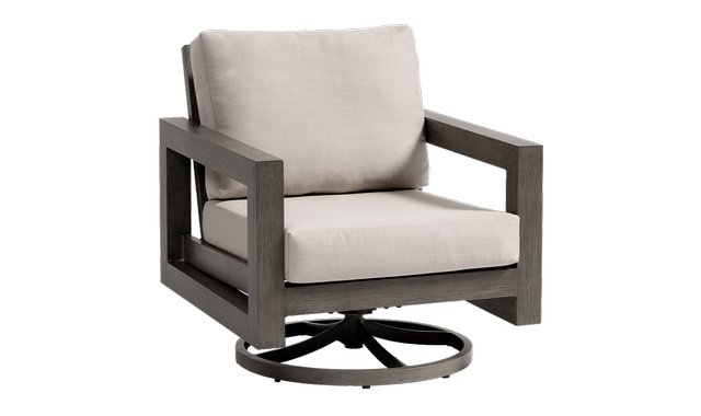 Swivel rocker club chair with an aluminium frame emphasizes both functionality and style. Choice of fabrics available. *Fabric Switch Flax