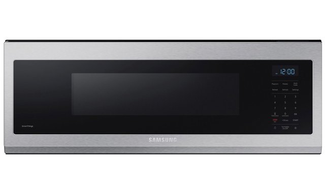 Enhance the look of your kitchen with the low-profile design of this slim over-the-range microwave. It fits into the same space as an undercabinet hood meaning you can maximize your food preparation space by moving your microwave off the countertop. While slim, it still has a sizeable 1.1 cu. ft. capacity that will easily hold cooking utensils of various sizes, including tall glasses, wide plates and big bowls.