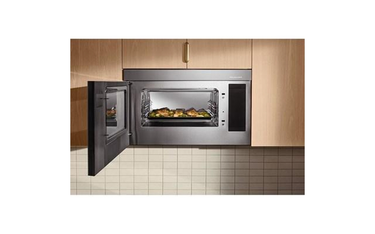 KitchenAid over-the-range microwave oven features Air Fry technology, Convection technology, 950-watt of power and a total capacity of 1.1 cu. ft.