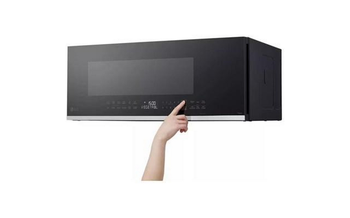 The LG 1.3 cu. ft. Over-the-Range Microwave Oven offers convenience with EasyClean®, making cleaning quick and simple. Featuring ThinQ® App integration with Scan-to-Cook technology, it syncs with your smart LG appliances for seamless cooking. The EasyClean® interior ensures hassle-free maintenance, making it a perfect blend of smart features and practicality.