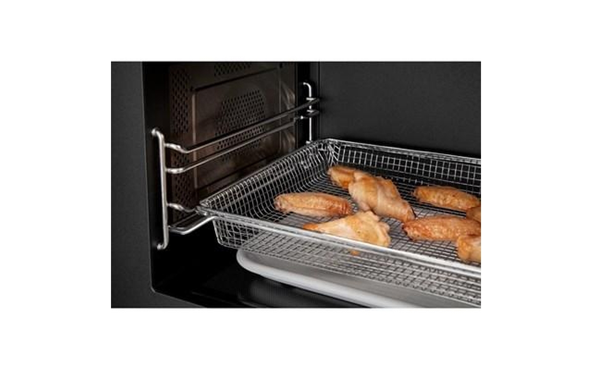 This microwave and air fryer combo crisps and caramelizes food with cooking modes like Air Fry Mode and Roast Mode. Monitor cooking progress while foods are in the microwave with Smart Features.* This flush mount microwave features a built-in design** that sits flush against cabinets to elevate your kitchen's style, while the Turntable-Free Design makes for easy cleaning after mealtime.