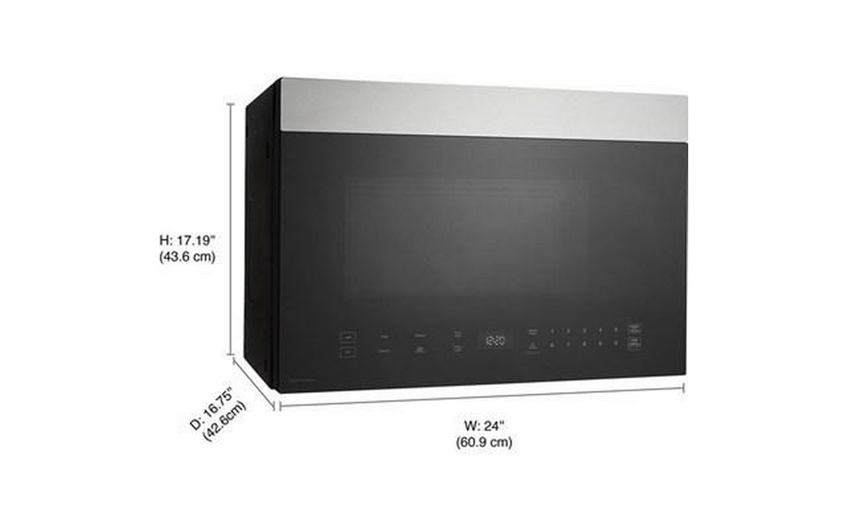 Save space in the kitchen without sacrificing your cooking needs with a 1.4 cu. ft. over-the-range microwave hood combination. Add style and function to your kitchen with a sleek full width glass front and electronic touch controls. The 2-speed vent fan helps you get rid of cooking odours, smoke and moisture from your kitchen. Plus, sensor cooking programs let you cook food automatically, while microwave presets, such as defrost and melt or soften, deliver the right amount of time and heat.